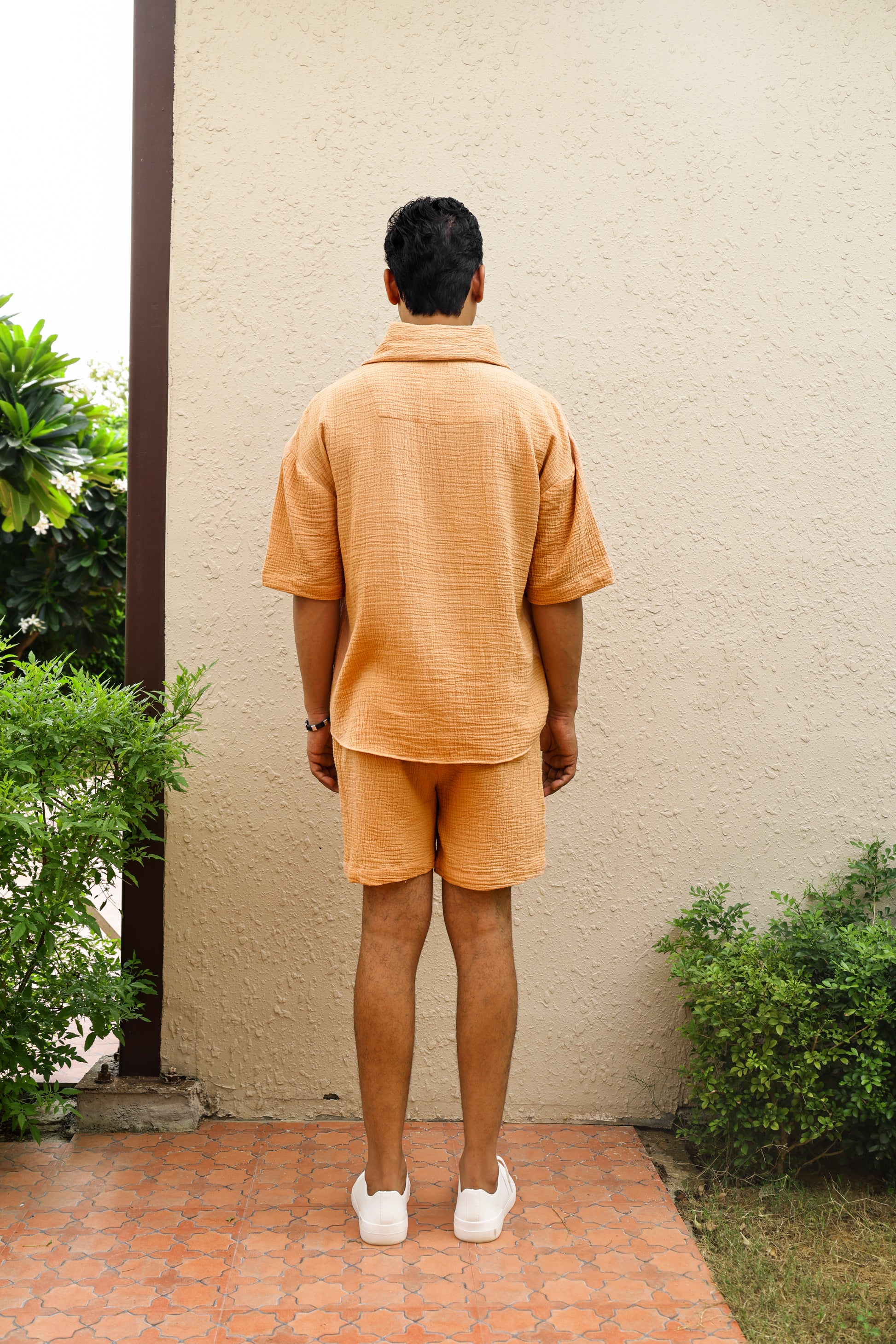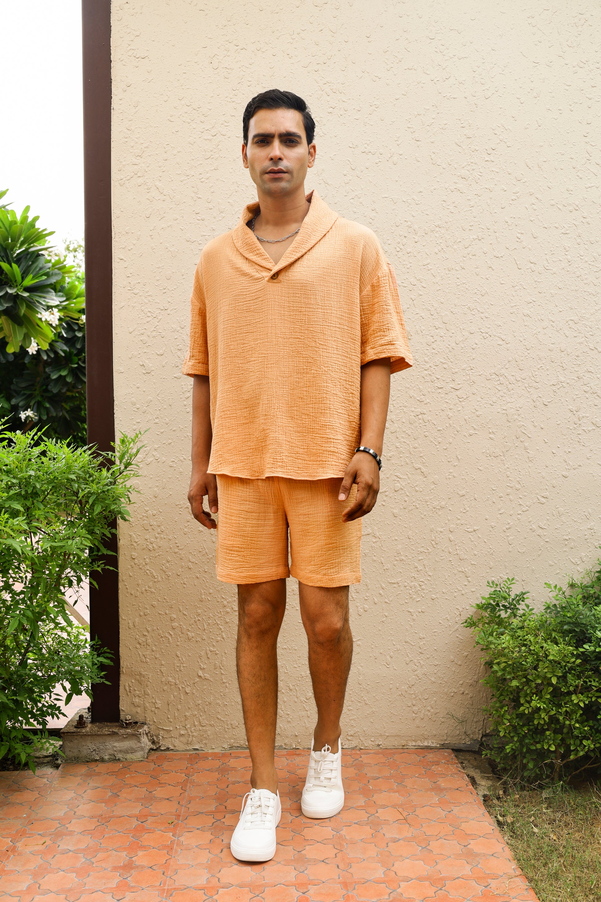 Designed for the free-spirited, The Nomad set made from craft crinkle cotton fabric, brings a fresh, laid-back vibe for modern travelers. The pastel salmon shade combined with the elements of an oversized silhouette and matching relaxed shorts makes for a versatile look.